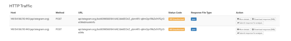 Looking at the Telegram requests generated by the RAT, we can already preemptively block known infrastructure.