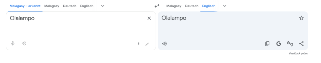 When putting Olalampo, Nikoro or foltinao into a translator, it consistently suggests the same language, despite there being no real translation ^^