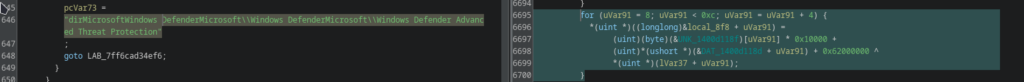 In later builds these strings disappear entirely and are reconstructed at runtime using multiple XOR-based decoding routines and different key constants.