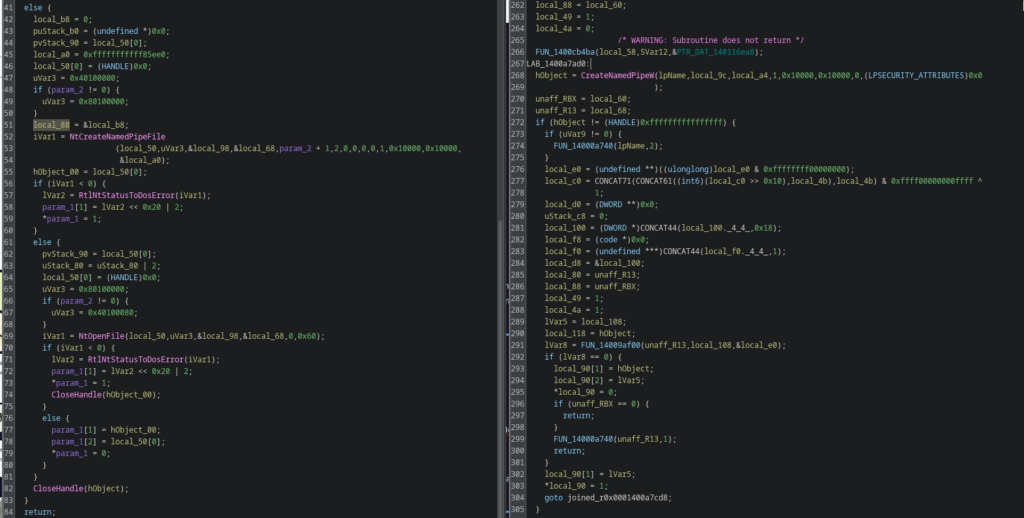 - Named pipes moved from CreateNamedPipeW to NtCreateNamedPipeFile