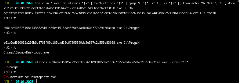 The first thing I wanted to verify was whether any additional user paths were embedded in the samples: