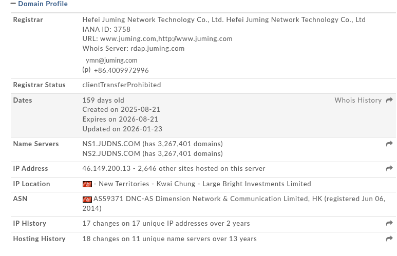 - Domain registration: 21 Aug 2025