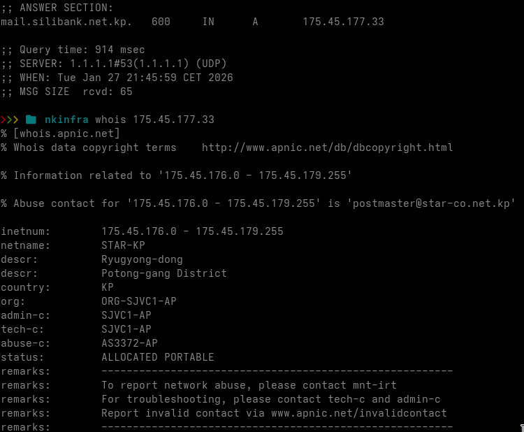 | mail.silibank.net.kp | 175.45.177.33 | 25 | Postfix |